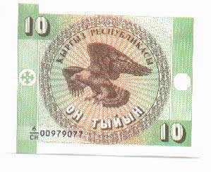 Descripción: 6-kyrg2. Billete Kyrgystan P-2. 10 Tijin 1993. Plancha |