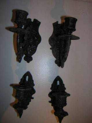Descripción: Lote formado por dos parejas de candelabros de pared en hierro. Gastos de envio por cuenta del comprador. |