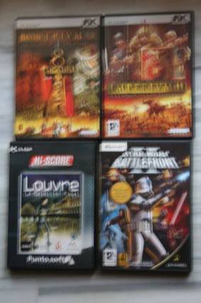 Descripción: Usados en perfecto estado. -Pro evolution soccer 3- 4€ -Pro evolution soccer 4- 4€ -Pro evolution soccer 5- 4€ -Mata Hari- 3€ -Louvre La maldición final- 2€ -Imperium I- 4€ -Imperium II- 4€ Gastos de envío no incluidos. |
