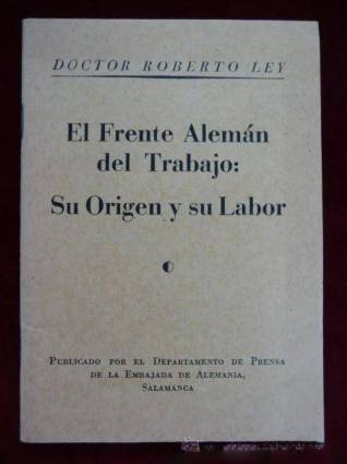 Descripción: 1935. 2ª GM / EL FRENTE ALEMÁN DEL TRABAJO: SU ORIGEN Y SU LABOR · Dr. Roberto Ley. Discurso 1934