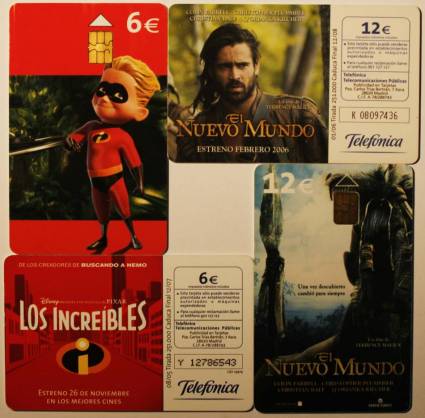 Descripción: Pack de 4 tarjetas telefónicas usadas de películas. Descripción de las tarjetas: - 2 unidades de Jack Jack de la película de Los increíbles - 2 unidades de El Nuevo mundo.