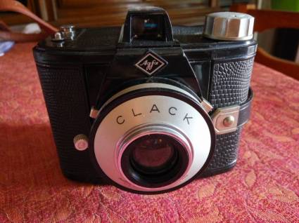 Descripción: Vendo cámara antigua Clack fabricada por Agfa entre 1954-1965. En perfecto estado de conservación. Es una cámara, en forma de caja, con un solo elemento de lente de 95 mm de menisco con lente de primer plano incorporado y filtro amarillo. Se tarda 6x9 cm 120 imágenes en la película. La óptica es una simple lente de menisco y el cierre tiene tan solo 2 velocidades; una de 1/30s y otra la posición B de apertura continua. Ideal para coleccionistas |