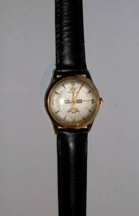 Descripción: reloj marvin laminado en oro, con fases lunares con ventanitas que indican mes y dia, 17 rubis este reloj es de coleccion casi unico.