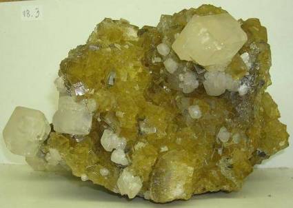 PRECIOSA FLUORITA DE LA MOSCONA CON CUARZO, DE UN COLOR AMARILLO INTENSO. EJEMPLAR DE 20 CM.