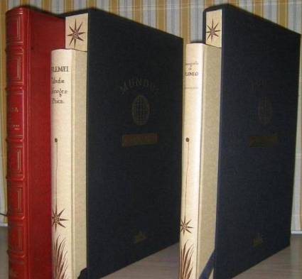 El primer atlas impreso de la historia. Edición facsimilar del atlas de Claudio Tolomeo tal y como salió de la imprenta de Johannes Reger en 1486. Le brindamos la posibilidad de conocer la cosmografía de Tolomeo en edición facsímil del incunable del 1486, conservado en la Universidad Complutense. Tolomeo, astrónomo, matemático y geógrafo griego que vivió en el siglo II de nuestra era, esta considerado el sintetizador de los resultados de la astronomia griega. Dos son sus principales vías de transmisión de las obras de Tolomeo. Una a través de su version árabe, fuente de los traductores al latín de Toledo. Otra, a través de Constantinopla, gracias al monje y diplomatico Máximo Planudes, probable reconstructor de los mapas ptolomaicos. A finales del siglo XV se realizaron las primeras impresiones de la Cosmographia en la traducción latina de Jacobo Angelo.