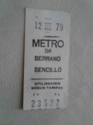 Descripción: Billete de metro de Madrid. Serrano. Año 79 |