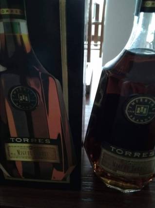 Botella Brandy Torres . Con precinto de Hacienda. Y su caja