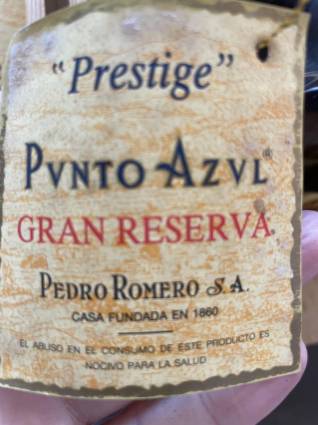 Descripción: Botella brandy punto azul Prestige Gran Reserva Solera 1956. En su caja original, con precinto. |