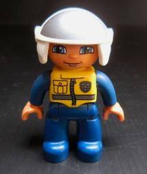 Descripción: Minifigura LEGO 47394pb138 – Figura Duplo Lego Ville, Policía, Piernas y mono azul oscuro con chaleco amarillo y casco blanco |