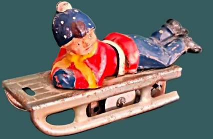 Descripción: Boy on SledgeEl juguete de hojalata "Boy on Sledge" de Hammerer & Kühlwein (H&K) es una pieza de colección fabricada en la Zona de Ocupación Estadounidense de Alemania (US-Zone, Germany) en la década de 1940 o 1950, que funciona con mecanismo de cuerda. Detalles del Juguete Fabricante: Hammerer & Kühlwein (H&K), un fabricante alemán de juguetes de hojalata. Origen: Producido en la US-Zone de Alemania, lo que sitúa su fabricación en el período inmediatamente posterior a la Segunda Guerra Mundial, antes de que se formaran las Alemanias Oriental y Occidental.