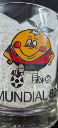 Descripción: Lote de 8 vasos oficiales del mundial 82 con la carismatica mascota: Naranjito. Parte posterior logo de coca cola Pertenecen a la serie 2 de la colección |