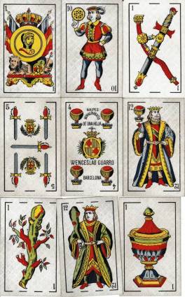 Descripción: Baraja española de nº 5 de Wenceslao Guarro. 48 Cartas. Fabricada el año 1895. Algunas manchas de óxido. Buena conservación. Sin usar. Las cartas son tal como se aprecia en las fotos. En su envoltorio de papel original abierto, ver foto.