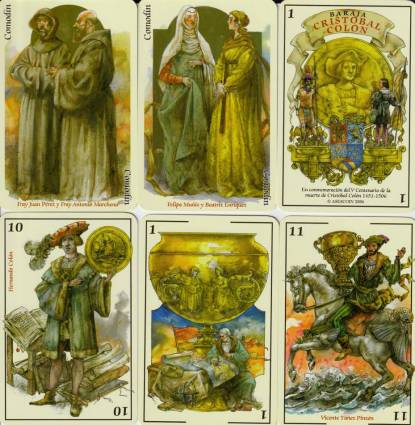 Descripción: Baraja española dedicada a Cristobal Colón en conmemoración del V Centenario de su muerte. En ases, cuatros, figuras y comodines están representados los personajes más importantes del Descubrimiento. Baraja ilustrada por Vicente Arnás. Fabricada por Naipes Comas. Editada por Asescoin. 52 Cartas + 2 Comodines + 4 cartas de presentación. Edición limitada y numerada de 1500 ejemplares. Fabricada el año 2006. Nueva. Sin usar. En su estuche de cartón/plástico tipo corredera. Baraja de excelente calidad.