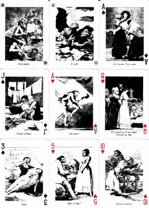 Descripción: Baraja poker los Caprichos de Goya. Basada en los Caprichos de Goya. Cada carta es un cuadro distinto. 52 Cartas + 2 Jokers + 1 carta de presentación. Fabricada por Naipes Comas el año 1991. Editada por Asescoin. Edición limitada y numerada de 500 ejemplares. Nueva. Sin usar. En su estuche de cartón original. El estuche, en un lado, está algo deteriorado por el paso del tiempo. Ver foto. Las cartas están intactas.