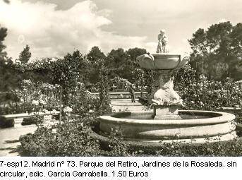 Descripción: Postal Madrid. nº 73. Parque del Retiro. Jardines de la Rosaleda, sin circular, edic. García Garrabella. ref. 7-esp12 |