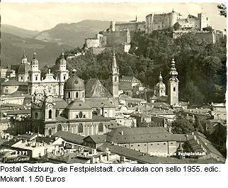 Descripción: Postal Austria. Salzburg, die Festpielstadt. circulada con sello año 1955. edic. Mokart. ref. 7-aus1 |