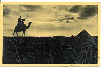 Descripción: Postal Egypto. Cairo. The Pyramids of Giza at sunset. circulada con sello año 1950. ref. 7-afri6 |