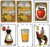 Baraja española de Asturias. El palo de oros son manzanas. Copas: campanos de sidra; espadas: botellas;...