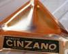Está hecho de aluminio y presenta el logotipo de Cinzano con las letras en relieve en los colores distintivos...